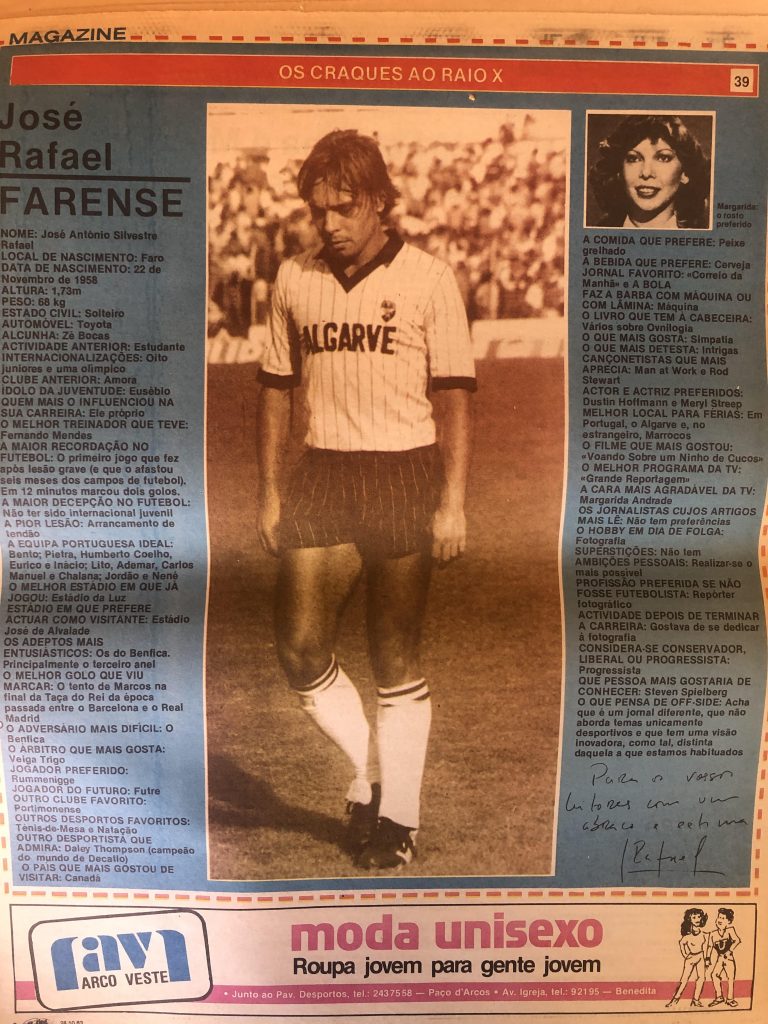 Actividade anterior Mecânico de automóveis O melhor que viu Um do Artur Jorge na baliza dele O melhor estádio San Paolo, Nápoles A cara mais agradável da TV...